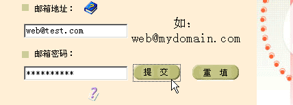 2、在邮箱地址栏输入"web@test.com",并输入相应的密码,点击"提交"
