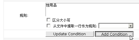 4> 选择好范围后,进行制定规则。填入"性用品"并点"Add Condition"