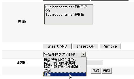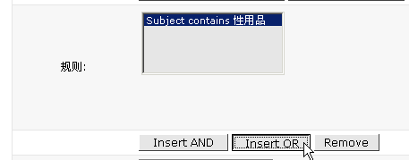 5> 由于还要同时拒绝含有"情趣用品"标题的邮件,因此点击"insert Or"